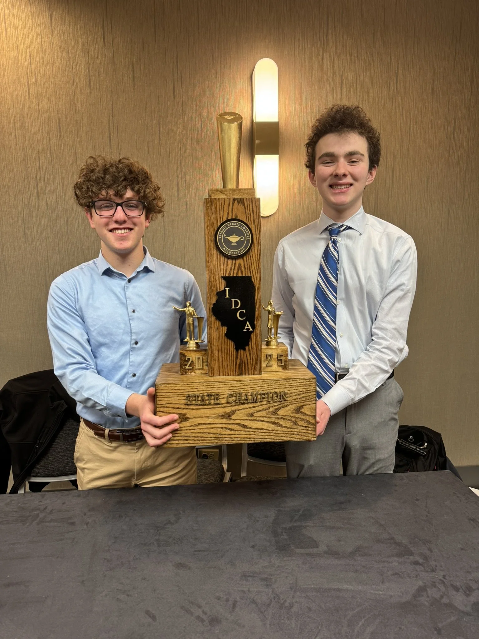 The novice state championship is currently sponsored the Illinois Debate Coaches Association and had previously been sponsored by the Illinois Communication and Theatre Association.